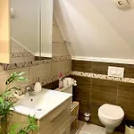 Jsou vybaveny parketovou podlahou. Hosté mohou využít prostornou sprchu a samostatnou toaletu jako doplňkový doplněk.